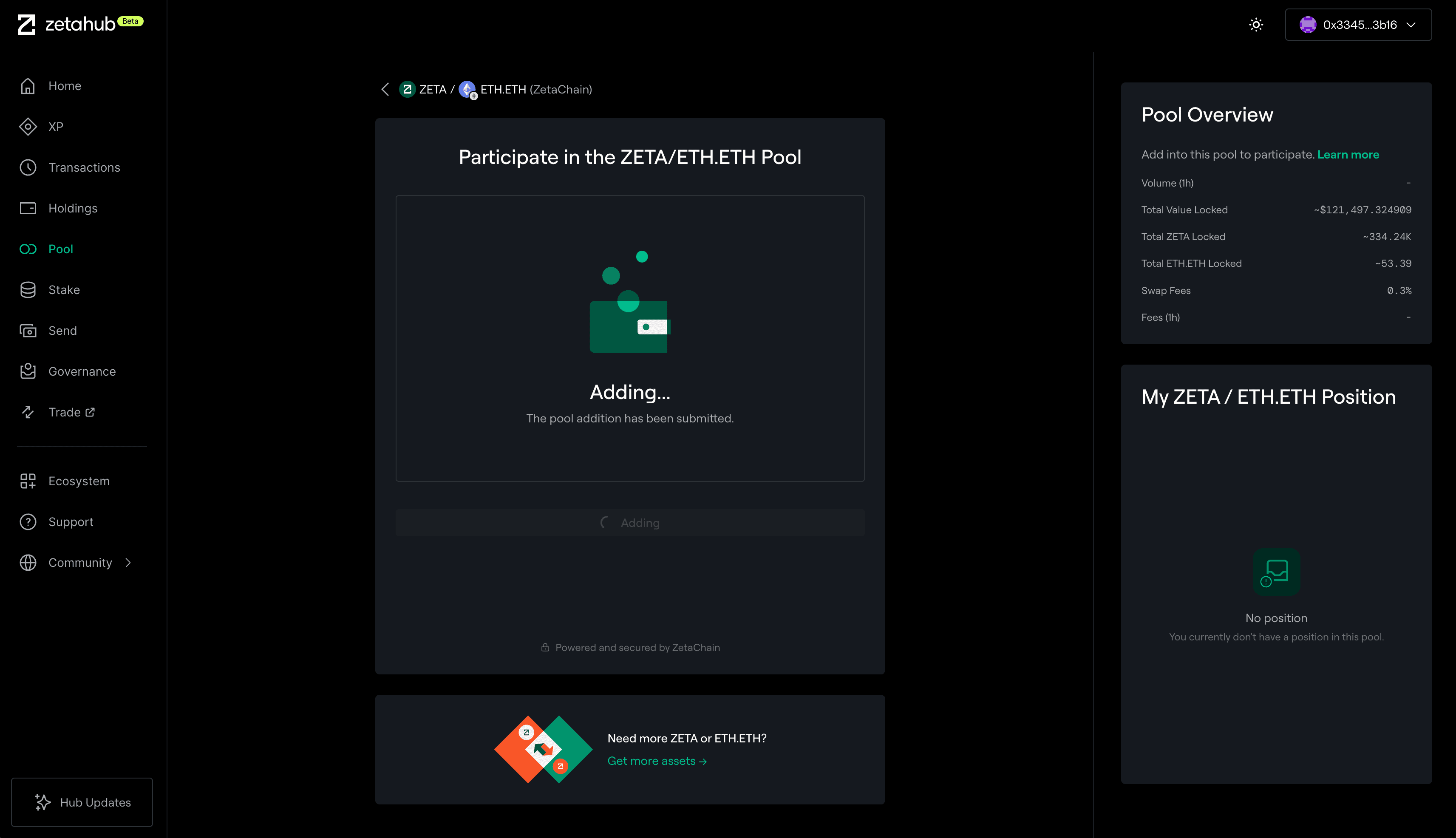 By following these steps, you can easily manage your liquidity on ZetaHub, earning fees and maintaining control over your assets.